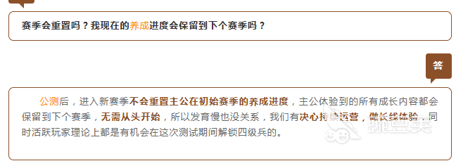 每一個(gè)賽季不會重置。這主要是和賽季的核心規(guī)則有關(guān)。在公開測試結(jié)束之后,就會進(jìn)入到賽季制的運(yùn)營階段,每一個(gè)賽季全部都會有明確的周期規(guī)劃,其中就會包括養(yǎng)成進(jìn)度的繼承。初七賽季在結(jié)束之后將進(jìn)入到一個(gè)新的賽季,所有角色的武將等級,還有技能解鎖,還有主城建筑的等級全部都不會清零,這就意味著可以直接延續(xù)到下一個(gè)賽季,大家也并不需要擔(dān)心自己辛苦積攢的資源全部的浪費(fèi)掉,哪怕一開始發(fā)育比較慢也沒什么關(guān)系。