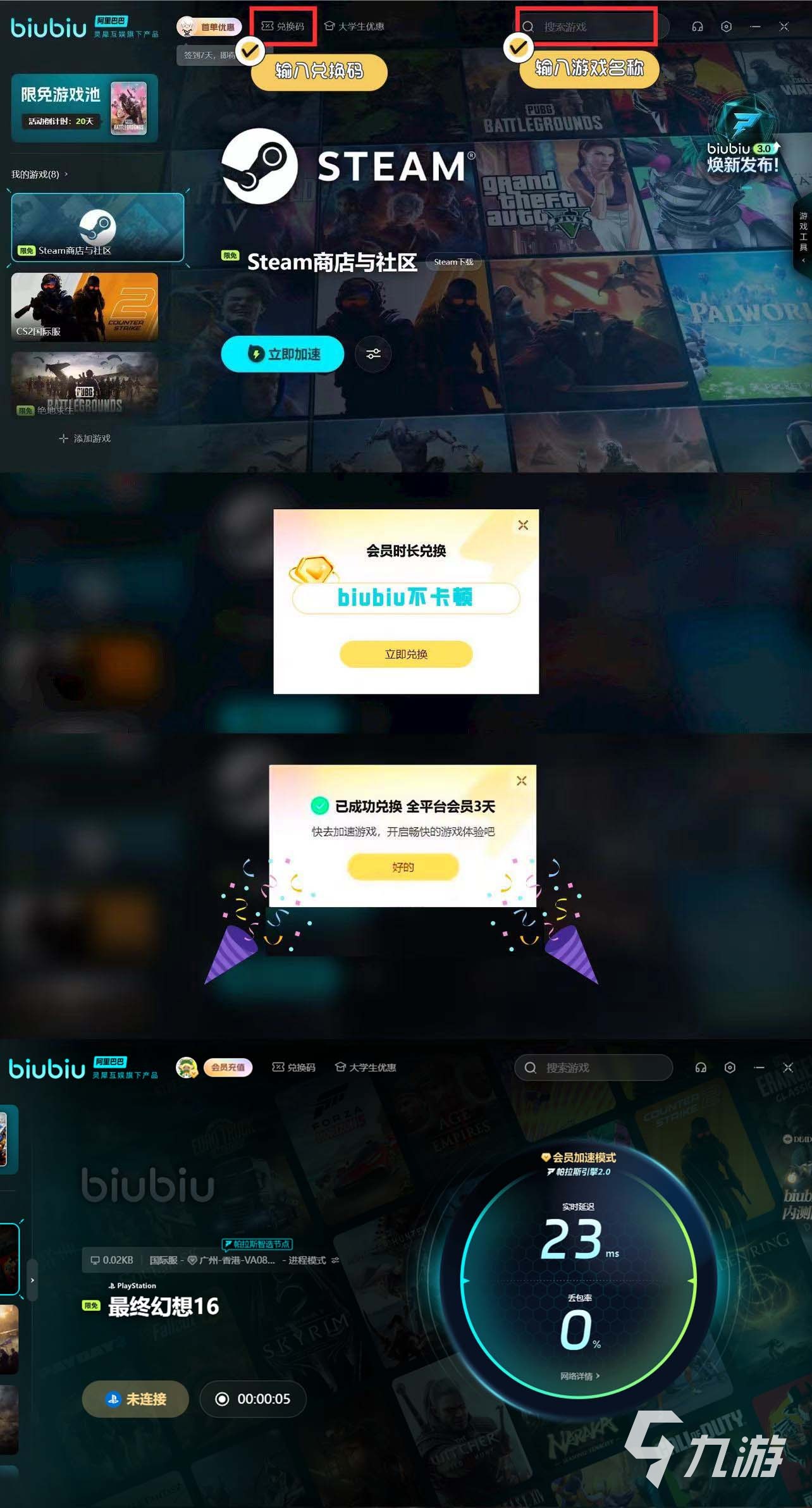 游戲時(shí)若是想避免卡頓的話,最好用上biubiu。加速過(guò)后,才能有效提速,讓你流暢攻擊!新用戶可領(lǐng)取24H的免費(fèi)加速,此外新老用戶可輸入【biubiu不卡頓】,即可領(lǐng)取三天免費(fèi)加速。