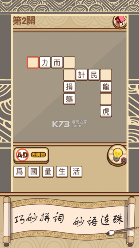 《漢字十八變》是一款絕對能讓你大開眼界的游戲,甚至可以說它是漢字世界里的魔術(shù)秀。每個關(guān)卡都由一個漢字開始,玩家需要在這個基礎(chǔ)上進行一系列的變化,使它在形態(tài)、結(jié)構(gòu)或是語義上發(fā)生多次變化。就像是玩轉(zhuǎn)字形的魔法師,你需要通過巧妙地變換每一筆每一劃,來完成這些獨特的挑戰(zhàn),它把漢字的結(jié)構(gòu)美學(xué)與游戲玩法巧妙融合,帶給玩家無窮的創(chuàng)意和挑戰(zhàn)。