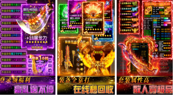 全新推送的傳奇手游,無需嚴重氪金就能輕松通關(guān),打怪的過程中所掉落的裝備,支持自動回收,天命劇情收集各類型專屬神器,各類型道具全憑拾取,有機會獲得神裝及寶藏。將復(fù)古版本融入其中,又加入具有特色的高爆率玩法,提供自動回收裝備離線掛機等特色功能,無需持續(xù)在線,即可獲得豐厚的資源與裝備。