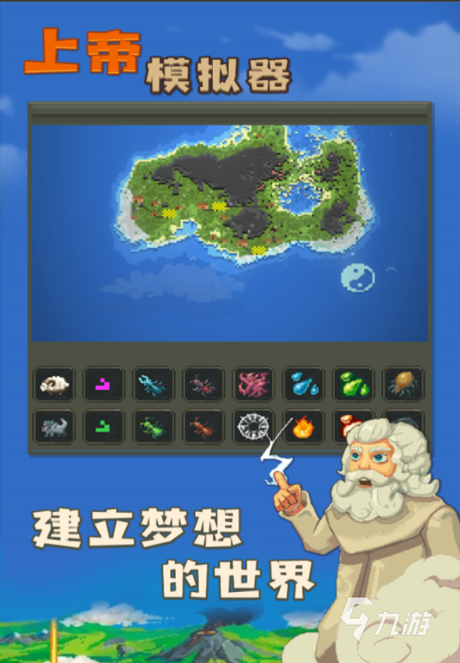 這是一個讓你成為創(chuàng)世主的游戲?!渡系勰M器》是一個全開放自由世界的沙盒游戲,在這里,你就是這個世界的上帝,世界上的一切都由你來親自建造和誕生;你可以創(chuàng)造出一個文明,也可以用災難讓文明迅速滅絕,一切都由你掌握。