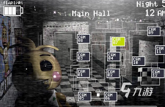 在游戲中,玩家需要化身餐廳警衛(wèi),過程中要想盡一切辦法來通過監(jiān)控觀察夜間每一個時間段各個玩偶的動向,在出現(xiàn)異常之后,玩家需要控制音樂來限制玩具熊的活動。同時玩家還要想盡一切辦法從這里逃離,躲避玩具熊的追擊。游戲故事發(fā)生在夜間十二點到凌晨六點,玩家以第一視角進行活動,給玩家?guī)砩砼R其境的真實感受,游戲中玩家手持手電來進行照明,還需要找尋場景中的電池來維持電量,快來體驗游戲中豐富多樣的關(guān)卡吧。