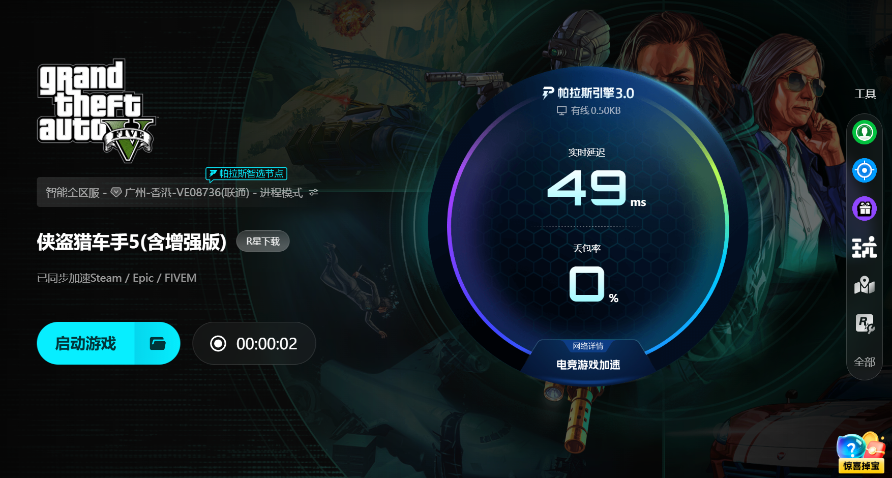 《GTA5》作為一款經(jīng)典的開放世界動(dòng)作冒險(xiǎn)游戲,自2013年發(fā)售以來(lái)一直穩(wěn)居熱度榜單。玩家不僅能在洛圣都體驗(yàn)單人劇情,還能在線上模式與全球玩家自由探索、合作完成任務(wù)或展開激烈對(duì)抗。龐大的地圖、豐富的載具與武器系統(tǒng),以及多人聯(lián)機(jī)的高自由度玩法,讓游戲的網(wǎng)絡(luò)和數(shù)據(jù)交互壓力非常大。網(wǎng)絡(luò)一旦抖動(dòng),資源加載就會(huì)出問題,輕則掉幀卡頓,重則直接崩潰閃退,把整局體驗(yàn)都?xì)У?。尤其是在跨區(qū)排隊(duì)和晚間高峰這種情況更頻繁,也讓“gta5閃退”成了近期的高頻搜索詞。