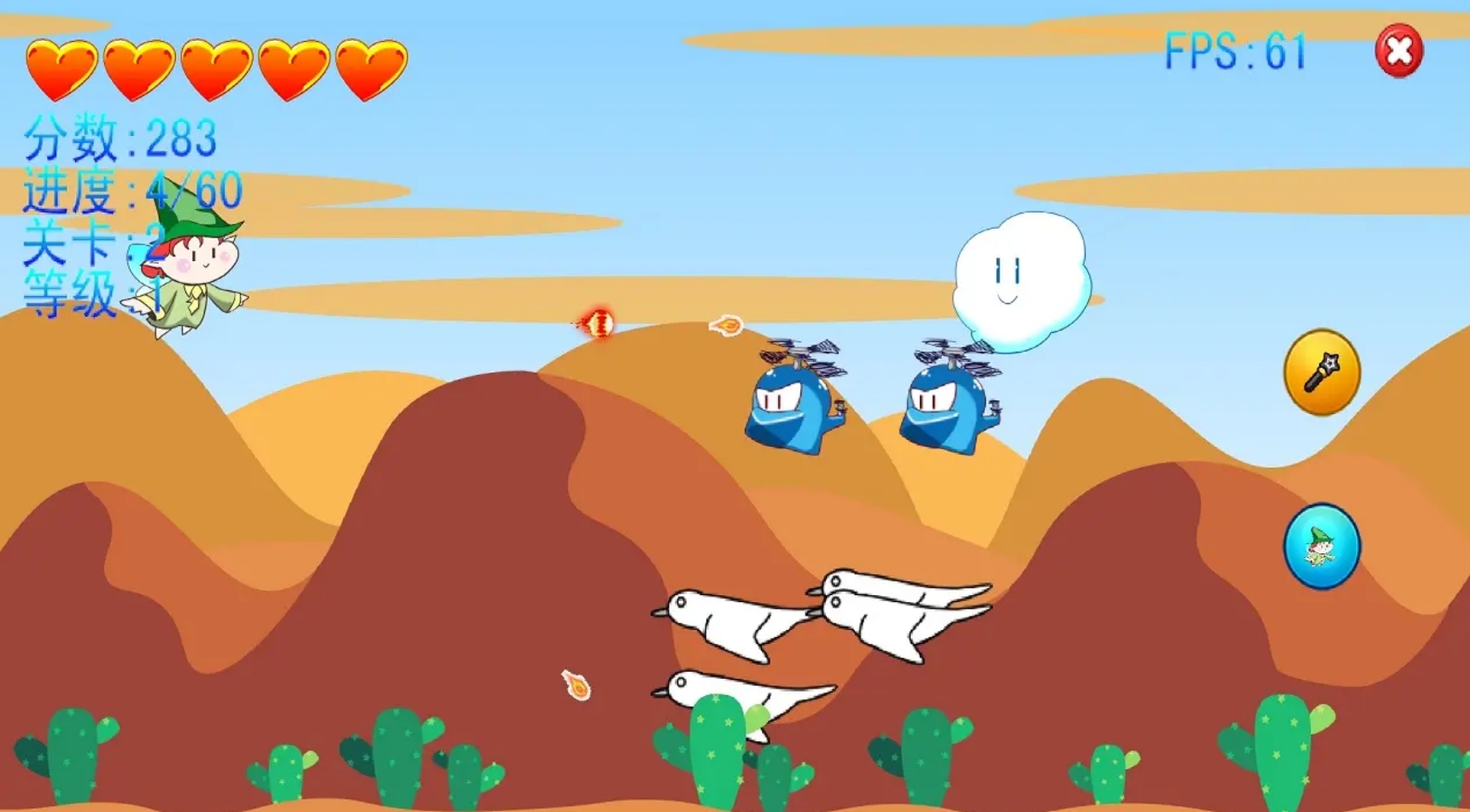 各位將幫助被飛鳥(niǎo)們占據(jù)了家園的精靈,釋放自己所學(xué)會(huì)的魔法驅(qū)趕它們,重新讓天空樂(lè)園回歸至精靈們的懷抱中。各位可操控精靈在天空中隨意地進(jìn)行移動(dòng),躲避飛鳥(niǎo)們發(fā)射出來(lái)的攻擊,并擊落每一只從右邊出現(xiàn)的飛鳥(niǎo),當(dāng)各位擊落的飛鳥(niǎo)數(shù)量達(dá)到關(guān)卡的要求后,就能完成本關(guān)的目標(biāo),同時(shí)也能去到下一關(guān)繼續(xù)與飛鳥(niǎo)作戰(zhàn),直至擊敗飛鳥(niǎo)頭領(lǐng)奪回天空。此作簡(jiǎn)單且耐玩,是很適合用來(lái)放松的街機(jī)。