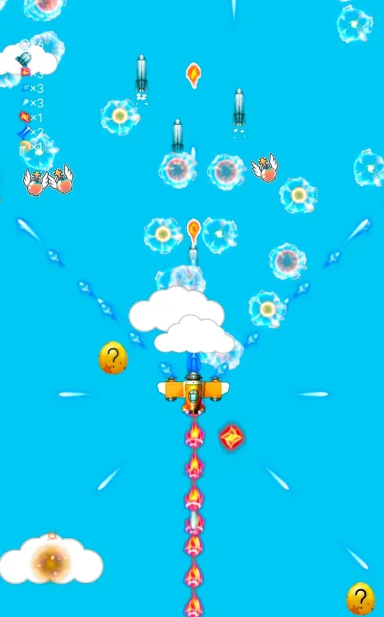 只用控制飛機(jī)移動(dòng)的玩法會(huì)令各位得到很好入門的操控體驗(yàn),各位也能化身為空戰(zhàn)大師,在天空中與自己的座駕一起完成擊毀所有敵機(jī)的任務(wù)。此作的每一關(guān)卡都有海量的敵機(jī)不斷地朝各位涌來(lái),它們所發(fā)射的彈幕子彈也能占滿整個(gè)屏幕,玩家們得十分小心地控制飛機(jī)進(jìn)行躲避,避免因撞上太多的子彈而導(dǎo)致飛機(jī)血量歸零。當(dāng)然,各位的飛機(jī)也能拾取到很多金蛋來(lái)提升自己,用更兇猛的火力來(lái)回敬敵機(jī)。