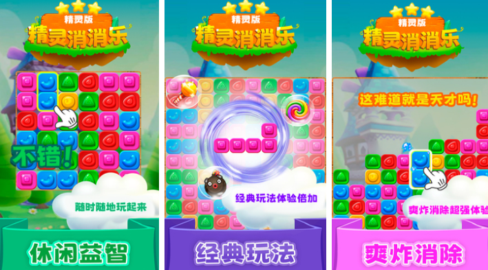 精灵消消乐是独立单机运行的点触式消除佳作,很经典的点触方块进行消除的设定代入感更强,爽快的手感、硬派的消除特效都颇受大家喜欢,具备着解压性质以及休闲益智内容值得一玩,魔法棒、炸弹等基础的消除道具会给予玩家帮助,精灵消消乐这款音画表现绝佳的消除神作你不想玩吗!