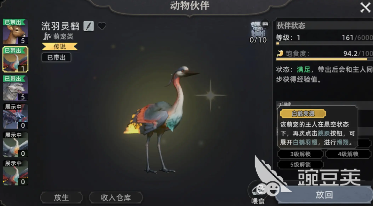流羽靈鶴是群聚的普通靈鶴中最特別的一只,被當(dāng)做首領(lǐng),有著特殊的花紋,也代表著它在聚落中不能被替代的地位,所以通常它會和幾只普通靈鶴,在河流的邊上出現(xiàn),并且這個族群的膽子都非常小。