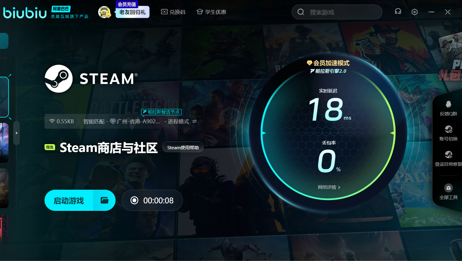 要是大家想先體驗試玩版的話,就可先使用biubiu為steam加速;優(yōu)化網(wǎng)絡(luò)后自然可快速找到愚靈并進(jìn)行游玩,到了開服那天就可以進(jìn)入正式服中體驗了。對于剛注冊的新用戶來說,可立刻獲得24小時的免費加速。新老用戶輸入兌換碼【biubiu不卡頓】,就能額外獲得三天免費加速。如果戰(zhàn)斗期間延遲高,那就無法及時命中對方的弱點,從而被其他武士消滅。建議各位用上加速器,延遲降低后自然能輕松解決對方。