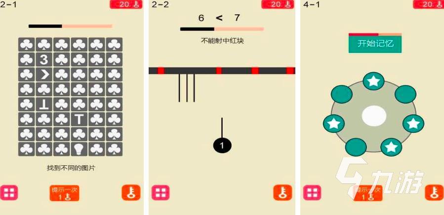 《極限腦力記憶訓(xùn)練》這款游戲是可以鍛煉小朋友們的記憶能力,通過腦力訓(xùn)練讓你擁有更高的記憶力。非常多種不同的玩法,幫助大家快速的記憶并回答問題。只有準(zhǔn)確的填選擇正確答案之后,才可以挑戰(zhàn)成功。無論是圖案的記憶以及顏色記憶,包括順序的記憶等等,這些都可以進(jìn)行訓(xùn)練。鍛煉小朋友的邏輯能力,這里提供的元素比較多,一筆繪畫,格子畫線以及拼圖等,非常多的思維創(chuàng)作關(guān)卡。提高你的能力,并進(jìn)行思維敏捷的訓(xùn)練,鍛煉玩家的觀察能力,讓小朋友們更好的做出反應(yīng)。