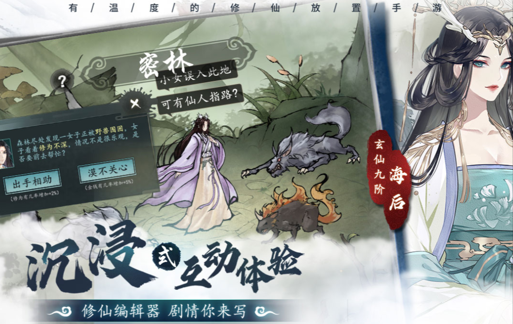 你能想象肉鴿元素和仙俠主題可以融合在一起嗎?以仙之名就是同時融合了仙俠、肉鴿以及RPG元素的神奇游戲,純國風的水墨畫面讓中國玩家感覺到十分親切,游戲內(nèi)每個角色的造型都十分古典大方。玩家扮演的主人公是一個初級仙人,需要盡其所能抵擋魔族的進攻。游戲獨創(chuàng)了一個劇情編輯器系統(tǒng),玩家可以隨心所欲改寫游戲的主線劇情。