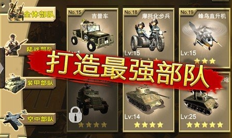 這是數(shù)百位玩家的不二選擇,想要扮演德軍,想要打造超強(qiáng)部隊,可在這款游戲里輕松完成,其中有超多車輛以及坦克,比如各種直升機(jī)、戰(zhàn)斗摩托車、吉普車等等??梢赃x擇全體部隊,陸戰(zhàn)部隊以及裝甲部隊,選擇車輛之后任由搭配。其中有自由建造模式,在廢墟中重建家園,還原真實(shí)戰(zhàn)場作為指揮官的你,海陸空三軍任由指揮。