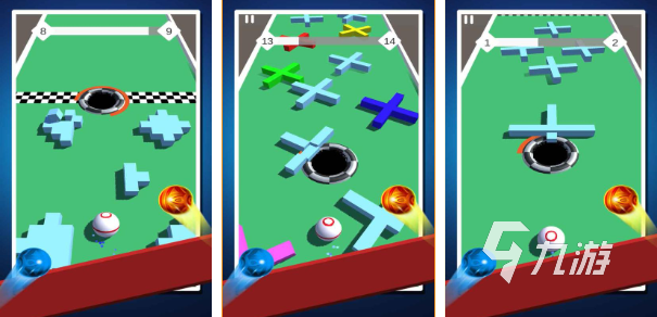 《3D吞噬彈球大作戰(zhàn)》是一款休閑風(fēng)的彈球游戲.玩家可控制桌面上任意的黑洞,為從底部發(fā)射過(guò)來(lái)的彈球保駕護(hù)航,必須清除任何擋在彈球前進(jìn)方向的障礙物,且彈球不能觸碰到黑洞.達(dá)到終點(diǎn)者可進(jìn)行下一關(guān).這款游戲玩法簡(jiǎn)單,需要玩家有一定的球路預(yù)判能力,球也會(huì)隨著關(guān)卡難度運(yùn)行的越來(lái)越快,十分不好掌控哦.