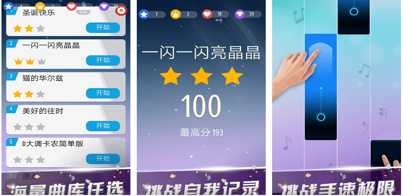 這款鋼琴主題的游戲玩法挺特殊的,采用的是下落式的點(diǎn)擊類玩法,白塊鋼琴師這款游戲比較適合休閑娛樂時玩玩。你需要用超快的手速點(diǎn)擊屏幕里的小黑塊,每一個黑塊都能發(fā)出悅耳的琴音,玩家可以依靠這些黑塊彈奏出好聽的曲目。玩家可以自己選擇想要彈奏的曲目,通過自己的雙手彈奏出好聽的鋼琴曲。