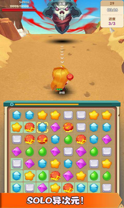 《消消打怪獸》當(dāng)冒險(xiǎn)戰(zhàn)斗,與看似格格不入的消除機(jī)制進(jìn)行碰撞,在這里給予了每個(gè)玩家更為空前絕后的消除享受,游戲中添加了種種妖嬈詭異的大怪獸,玩家將通過消除寶石,見證著角色在屏幕中運(yùn)用技能對(duì)怪獸進(jìn)行攻擊,擁有著更為雅致的棋盤布局設(shè)計(jì),每一次的消除路徑都將決定著角色技能的優(yōu)先出手。