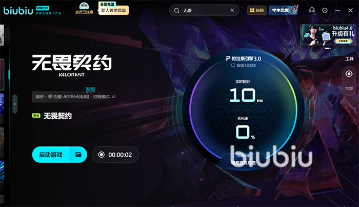 除此之外,biubiu的整體優(yōu)化工作,也在和電競(jìng)冠軍Aixleft合作后有了更好的提升,近期新版本正式上線,隨著而來(lái)的是有多個(gè)福利活動(dòng)上線,有新人活動(dòng),登錄就送24小時(shí)福利,也有普發(fā)活動(dòng),所有人使用【biubiu不卡頓】可在客戶端首頁(yè)兌換3天福利 ,需要注意的是,新人參與兩個(gè)活動(dòng)后,一共能有96小時(shí)福利!