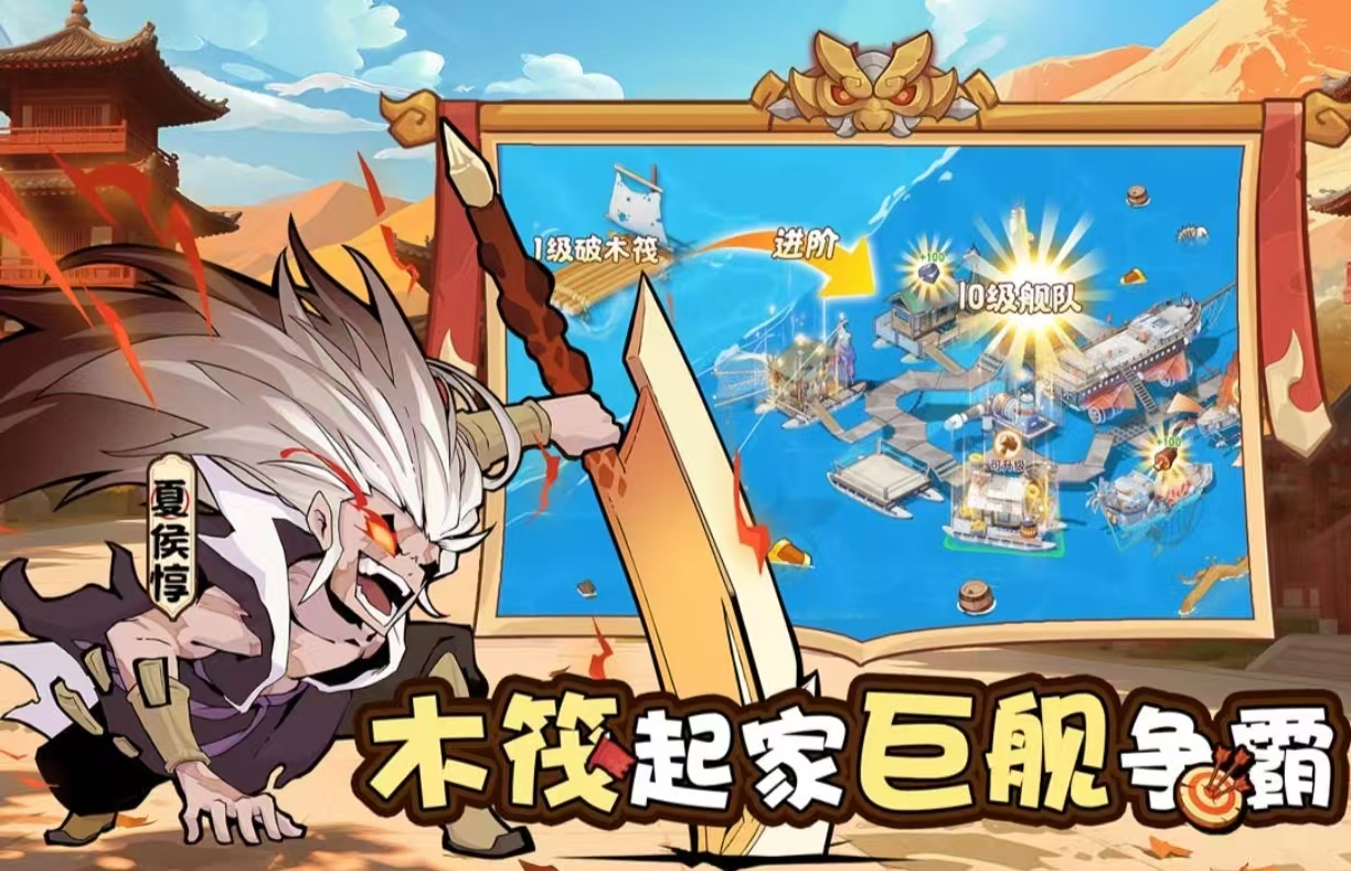 《先生請出山》游戲內(nèi)打造了一個海上戰(zhàn)斗的場景,并且需要在大海上完成建設(shè)的工作,將小小的魔什么木筏不斷升級打造成戰(zhàn)艦,還加入了三國相關(guān)的武將人物。武將角色擁有著完整的培養(yǎng)機制,能夠不斷的征戰(zhàn)能獲得建造材料,最初從一個簡單的地基開始。關(guān)卡內(nèi)敵人會一波波的來襲,武將角色需要不斷的進行放置,并且可以隨時調(diào)整戰(zhàn)場上的站位。