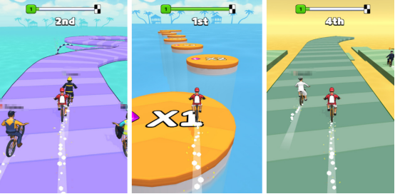 平時(shí)我們玩的單車競速類型游戲,一般的比賽場景都是平坦的陸地或者崎嶇的山路等,而這款卻與眾不同,以水上賽道為主。開局后手指點(diǎn)擊屏幕操控單車順利向前,單車行駛的越遠(yuǎn),獲得的分?jǐn)?shù)就會(huì)越高,雖然剛開始是平坦的道路,但是接下來就會(huì)遇到各種挑戰(zhàn),比如兩個(gè)平臺(tái)之間全部都是水,那么想要順利到達(dá)第2個(gè)平臺(tái),就要點(diǎn)擊屏幕,讓其中的單車完成跳躍。