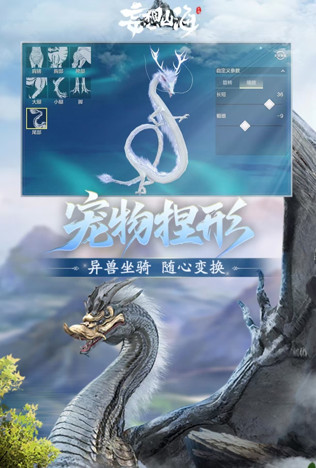 《妄想山海》加入了大量神話(huà)山海經(jīng)中的元素,地圖上會(huì)有眾多的上古神獸,玩家通過(guò)抓捕進(jìn)行馴服參與挑戰(zhàn),游戲內(nèi)帶來(lái)了眾多的動(dòng)畫(huà)場(chǎng)面,描繪了一個(gè)千變?nèi)f化的東方世界。360度的無(wú)死角進(jìn)行作戰(zhàn),地圖上擁有的設(shè)定也非常好,神獸角色可以成為玩家的坐騎,還有上百種的武器能夠隨機(jī)更換。也加入了大量的建造內(nèi)容,地圖上可以不斷的刷新物品,提供的任務(wù)種類(lèi)相當(dāng)多。